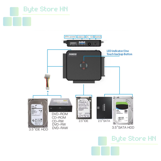 FIDECO Adaptador USB 3.0 a SATA/IDE